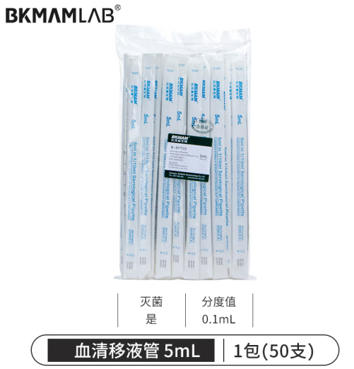 首页 > 仪器仪表 > 生物、医学样品制备设备 > 比克曼生物(BKMAM)血清移液管 一次性塑料吸管刻度移液管 化学实验室用品 独立包装 5mL 50支/袋 (zhyghf_221721002)SKU:yzwhyp894859