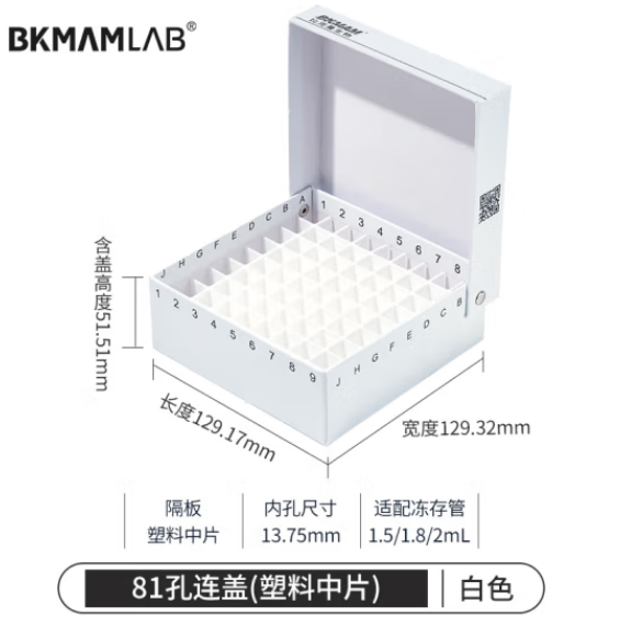 首页 > 仪器仪表 > 生物、医学样品制备设备 > 比克曼生物 纸质冻存管盒冷冻管盒样本冻存盒低温储存盒防水纸质试管盒【白色】81孔连盖(塑料中片) (zhyghf_221721715)SKU:yzwhyp894913