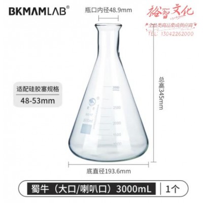 首页 > 仪器仪表 > 生物、医学样品制备设备 > 比克曼生物 蜀牛锥形瓶玻璃三角烧瓶加厚高硼硅毫升广口化学三角瓶实验室【大口/喇叭口】3000ml-1个 (zhyghf_221721831)SKU:yzwhyp894934