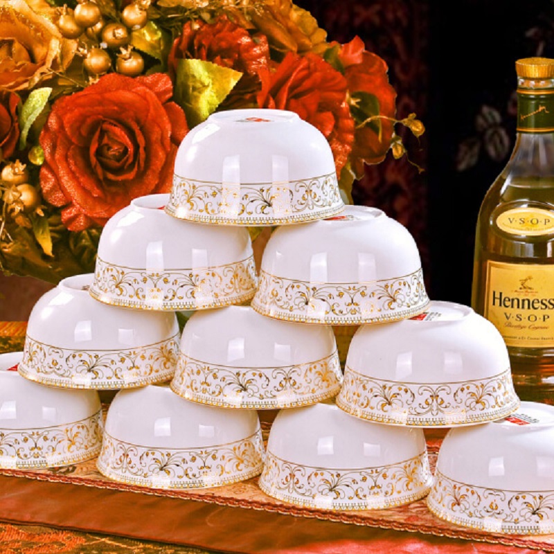 浩雅 陶瓷碗具套装10只装景德镇陶瓷餐具碗碟盘套装欧式 太阳岛 HY011 4.5英寸SKU:yzwhyp894977
