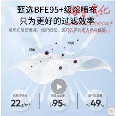 袋鼠一次性口罩100只(每10只独立包装/袋*10)三层防护灭菌级防尘防细菌SKU:yzwhyp895131