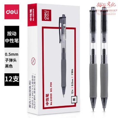得力(deli)中性笔签字笔 0.5mm子弹头按动笔水笔 办公用品 黑色 12支/盒 33999(zhyghf_800300012)SKU:yzwhyp895166