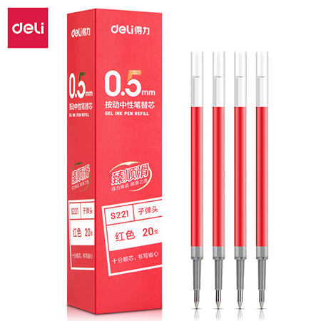首页 > 办公用品 > 笔 > 得力(deli)S221臻顺滑按动中性笔芯 签字笔水笔替芯 0.5mm子弹头20支/盒DL-S221红(zhyghf_800501078)SKU:yzwhyp895369