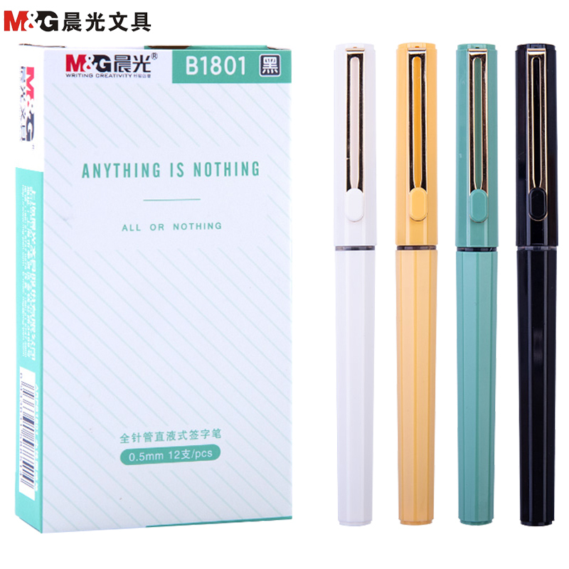 晨光(MG)文具0.5mm黑色中性笔 直液式全针管签字笔 初色系列水笔 12支/盒ARPB1801(zhyghf_800500700)SKU:yzwhyp895378