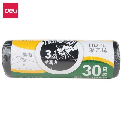 得力垃圾袋 9574垃圾袋 黑色垃圾袋 50*60cm(30个/卷)八角底垃圾袋 加厚垃圾袋