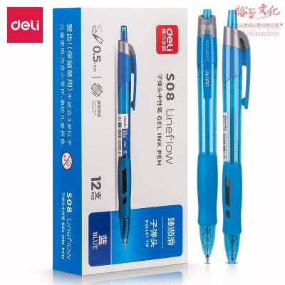 得力(deli)臻顺滑按动中性笔签字笔 办公用品 0.5mm子弹头 12支/盒S08蓝(zhyghf_800900580)SKU:yzwhyp895436