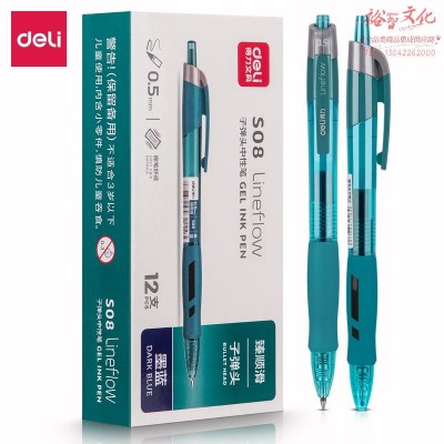 得力(deli)臻顺滑按动中性笔签字笔 办公用品 0.5mm子弹头 12支/盒S08墨蓝(zhyghf_800900578)SKU:yzwhyp895437