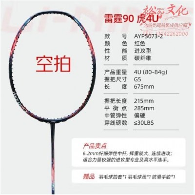 李宁(LI-NING)雷霆90虎MAX羽毛球拍单拍全碳素比赛拍进攻型 红色4U空拍(zhyghf_30012278)SKU:yzwhyp895505