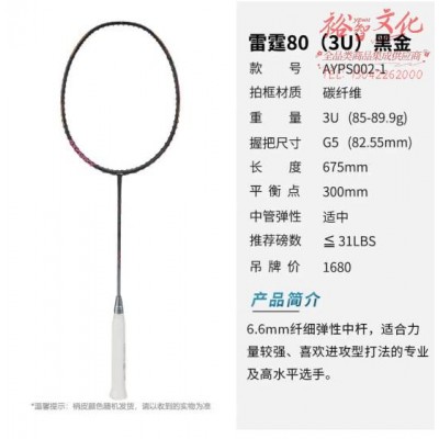 李宁(LI-NING)羽毛球拍雷霆90max龙 全碳素单拍(3U)空拍(zhyghf_30012277)SKU:yzwhyp895506