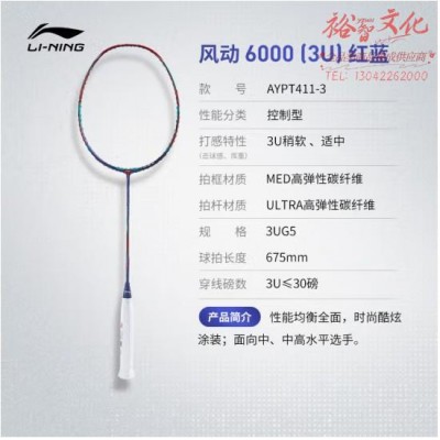 李宁羽毛球拍风动6000(3U)红蓝色羽毛球拍单拍未穿线AYPT411(zhyghf_30012354)SKU:yzwhyp895543