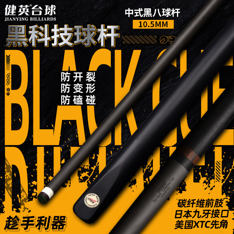 健英 黑科技碳素球杆台球杆中式黑八8桌小头碳纤维球杆YF-S1 10.5mm(zhyghf_30012345)SKU:yzwhyp895552
