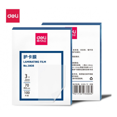 得力(deli) 3808 过塑机塑封机膜过塑膜 非真空包装机膜 优质专用护卡膜/塑封膜65*95mm 3寸 100张/包
