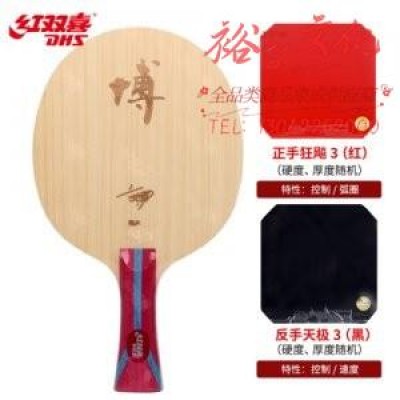 红双喜 DHS 乒乓球拍 B-博 纯木横拍贴正手狂飚3(红)反手天极3(黑)(zhyghf_30012423)SKU:yzwhyp895975