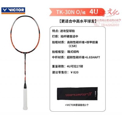 VICTOR 全碳素羽毛球拍单拍 TK-30N小鬼斩羽拍 4U鲜橘 空拍 (zhyghf_30012422)SKU:yzwhyp895976