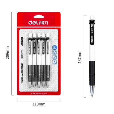 得力6509圆珠笔0.7mm子弹头(蓝)(5支/卡)