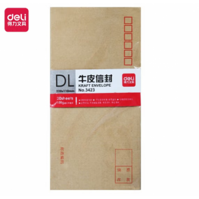 首页 > 办公用品 > 文具 > 得力(deli)20张5号牛皮纸信封 邮局标准信封220*110mm3423-20