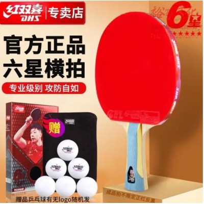 红双喜乒乓球拍六星单拍 横拍反胶弧圈结合快攻H6002含拍包(zhyghf_30012663)SKU:yzwhyp896447