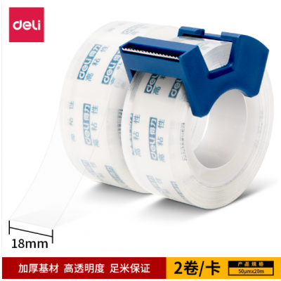 得力30039高透文具胶带套装18mm*20m*50μm(透明)(2卷/卡)