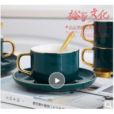 首页 > 用具 > 餐具 > Edo 欧式家用轻奢拉花茶杯套装【手绘描金 礼盒包装】230ml大容量 陶瓷杯子带勺子拿铁杯 墨绿色 (zhyghf_981400245)SKU:yzwhyp897126