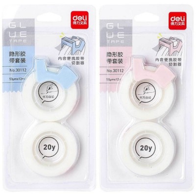 得力(deli)30112隐形文具胶带套装12mm*20y*50um2卷/卡(单位:卡)混色
