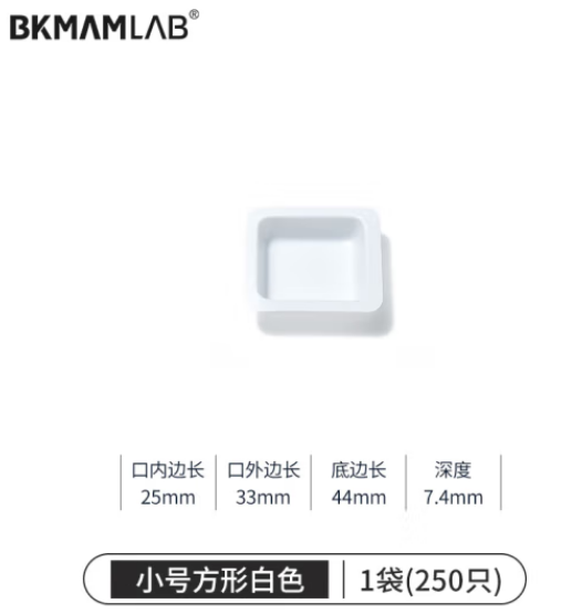 首页 > 仪器仪表 > 分析仪器辅助装置 > 比克曼生物(BKMAM)塑料称量盘称量船实验室一次性称量皿低吸附耐腐蚀 小方白色 250只/袋 (zhyghf_221721494)SKU:yzwhyp897522