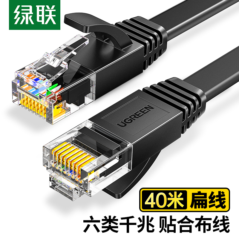 首页 > 信息化设备 > 网线 > 绿联(UGREEN)六类CAT6类网线 千兆网络连接线 电脑宽带家用监控非屏蔽扁平跳线 成品网线 黑色 40米 80101(zhyghf_330600092)SKU:yzwhyp897610