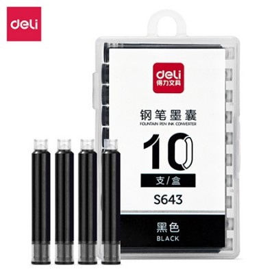 得力S643钢笔墨囊(黑色)(10支/盒)