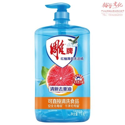 首页 > 办公用品 > 肥(香)皂和合成洗涤剂 > 雕牌 红柚薄荷洗洁精1kg 火锅烧烤去重油 烧焦食物附着 隔夜凝固油渍 难洗餐具(5瓶起送) (zhyghf_983000021)SKU:yzwhyp898172