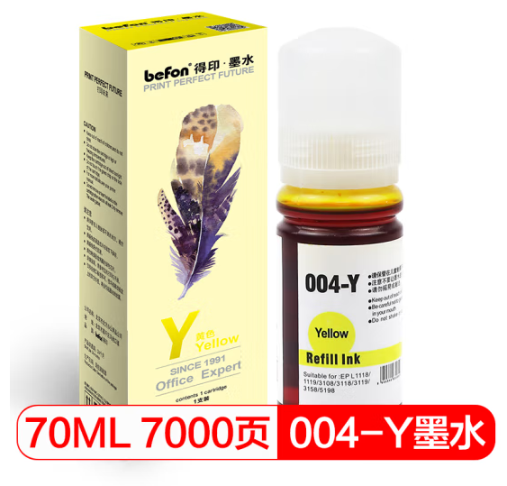 首页 > 办公用品 > 墨水 > 得印 004系列墨仓式黄色墨水70ml 适用爱普生EPSON L1118 1119 3108 3118 3119 3158 5198打印机墨盒 (zhyghf_221711696)SKU:yzwhyp898446