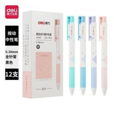 得力A545按动中性笔0.38mm全针管(黑)(支)
