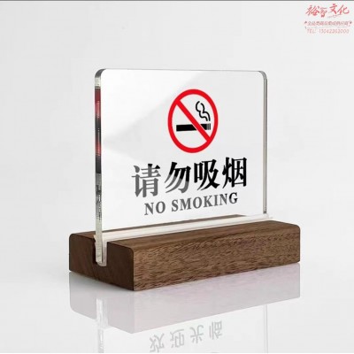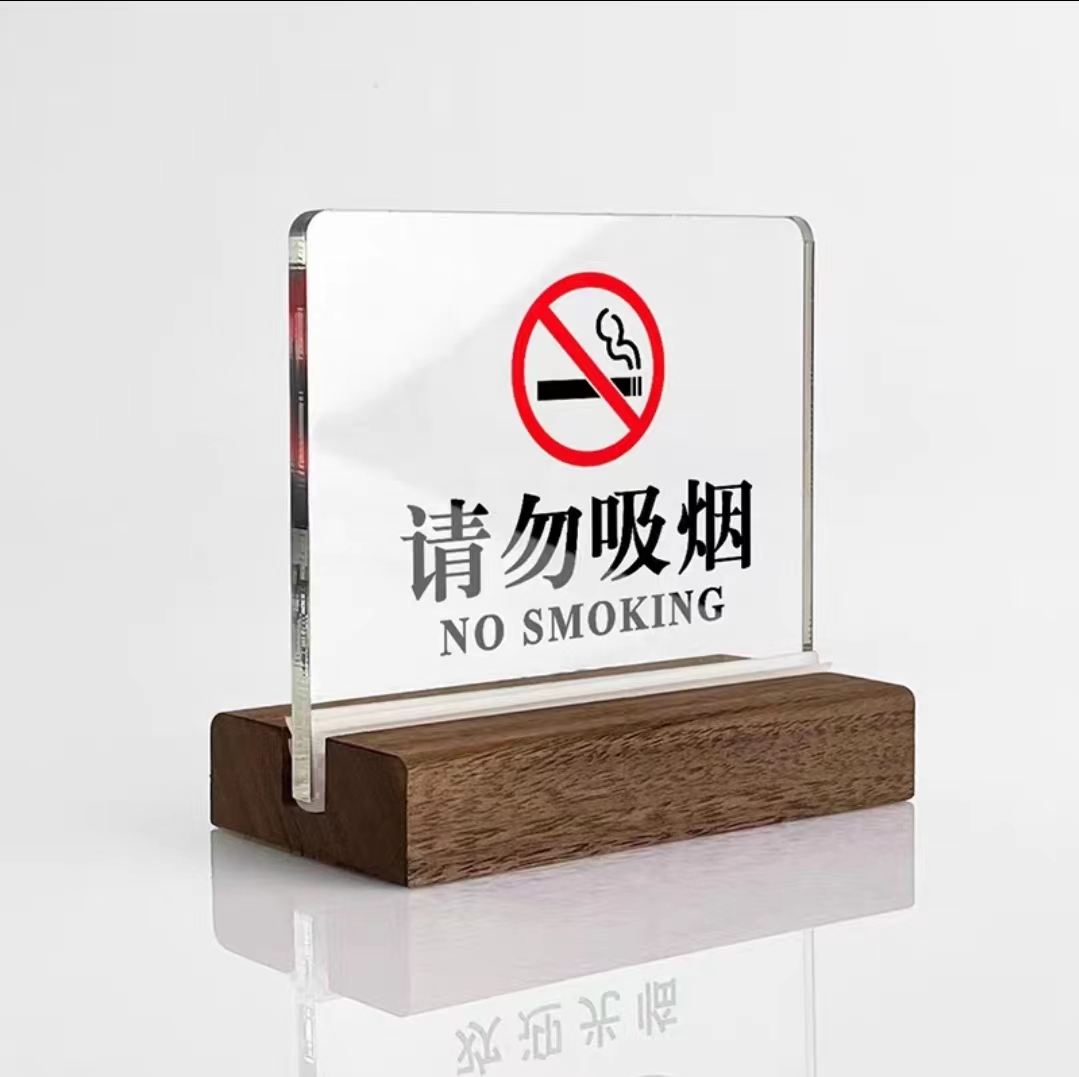 亚克力室内禁止吸烟立牌 胡桃木底座 15*11.7cm 单位:个 (zhyghf_330211102)SKU:yzwhyp899238