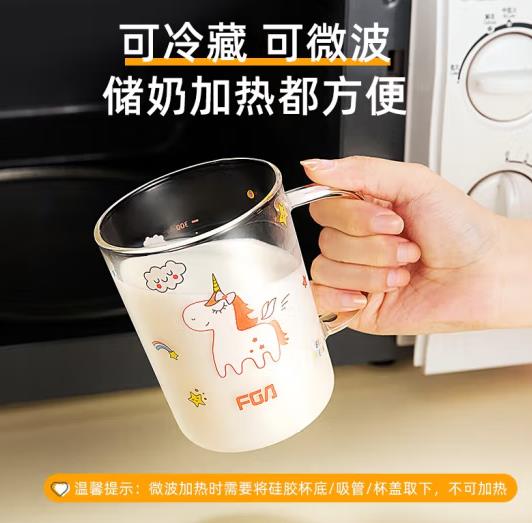 首页 > 电气设备 > 烹调电器 > 富光FGA牛奶杯 玻璃杯带刻度儿童冲泡奶粉杯宝宝早餐喝奶杯带把手婴儿吸管杯微波炉可加热 独角兽450ML(zhyghf_972400116)(zhyghf_972400116)SKU:yzwhyp899276