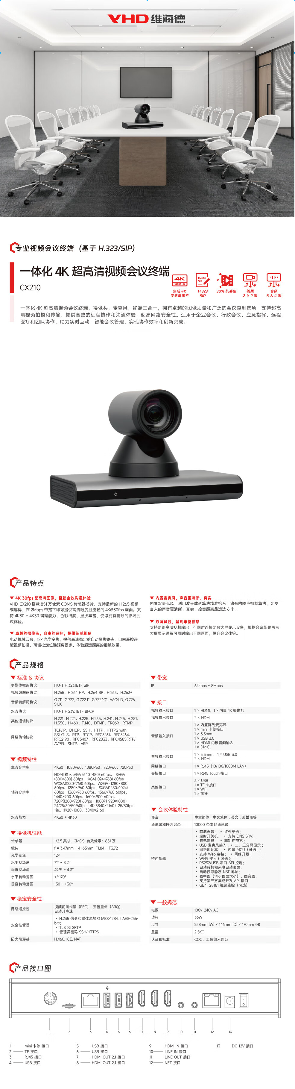 首页 > 广播、电视、电影设备 > 组合音像设备 > 会议、广播及音乐欣赏系统 > 维海德VHD 一体化 4K 超高清视频会议终端CX210 (zhyghf_20240394)SKU:yzwhyp899295
