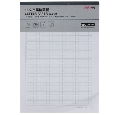 得力3429方格信稿纸-70g-266*190mm(本)
