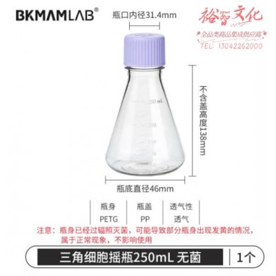 首页 > 仪器仪表 > 样品前处理及制备仪器 > 比克曼生物(BKMAM)塑料三角摇瓶无菌细胞摇菌瓶锥形瓶摇菌瓶实验室用培养瓶震荡瓶 250mL 透气盖 (zhyghf_221722434)SKU:yzwhyp899399