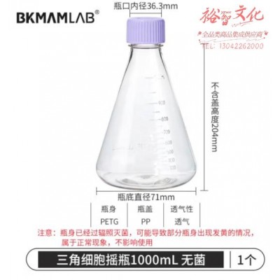 首页 > 仪器仪表 > 样品前处理及制备仪器 > 比克曼生物(BKMAM)塑料三角摇瓶无菌细胞摇菌瓶锥形瓶摇菌瓶实验室用培养瓶震荡瓶 1000mL 透气盖 (zhyghf_221722436)SKU:yzwhyp899401