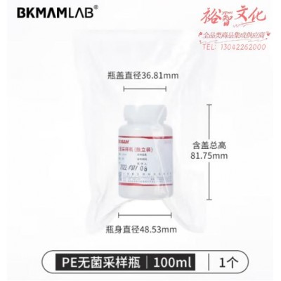 首页 > 仪器仪表 > 生物、医学样品制备设备 > 比克曼生物(BKMAM)无菌采样瓶 样品收集瓶带刻度实验室独立包装固体液体收集【PE】100ml含内盖 1个/袋(10个起订) (zhyghf_221722527)SKU:yzwhyp899772