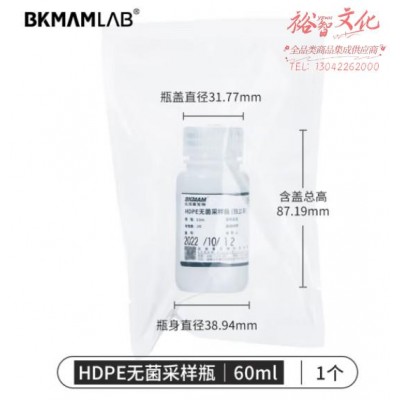 首页 > 仪器仪表 > 生物、医学样品制备设备 > 比克曼生物(BKMAM)无菌采样瓶 样品收集瓶带刻度实验室独立包装固体液体收集【HDPE】60mL 1个/袋(10个起订) (zhyghf_221722530)SKU:yzwhyp899924