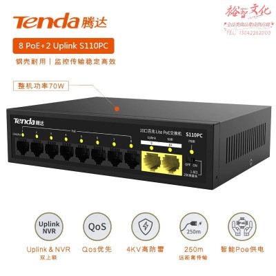 首页 > 信息化设备 > 交换设备 > 腾达(Tenda) 8口百兆POE监控交换机远距离监控网线传输摄像头供电支持Uplink NVR S110PC【8 PoE 2 Upli】70W(zhyghf_142100020)SKU:yzwhyp899961