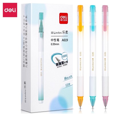 得力A619 学生中性笔0.35mm加强型针管(黑)(支)