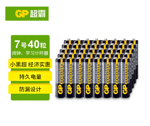 首页 > 电气设备 > 原电池和原电池组 > 超霸(GP)7号电池40粒七号碳性干电池黑超适用于耳温枪/血氧仪/血压计/血糖仪/鼠标等7号/AAA/R03(zhyghf_23093527)SKU:yzwhyp900280