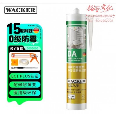 瓦克DA防霉玻璃胶厨卫密封胶防水美容胶中性硅胶马桶封边胶水白色1支 (zhyghf_40011842)SKU:yzwhyp900659