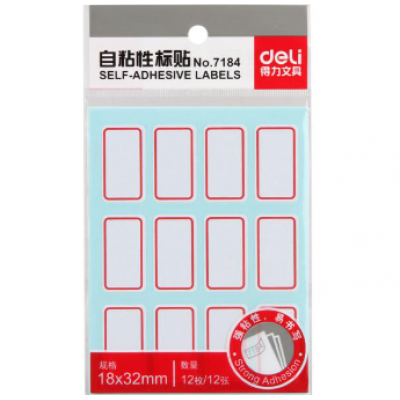 首页 > 办公用品 > 文具 > 得力 7184 手写标签(带红框) 18*32mm 白色 100本/盒