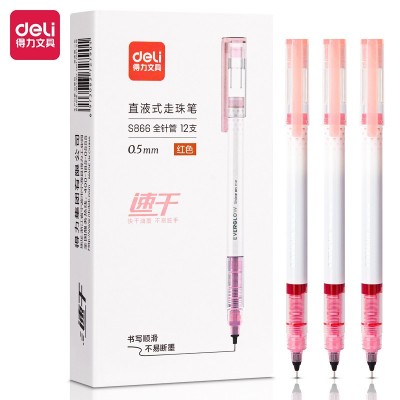 得力S866直液式走珠笔0.5mm全针管(红)(支)