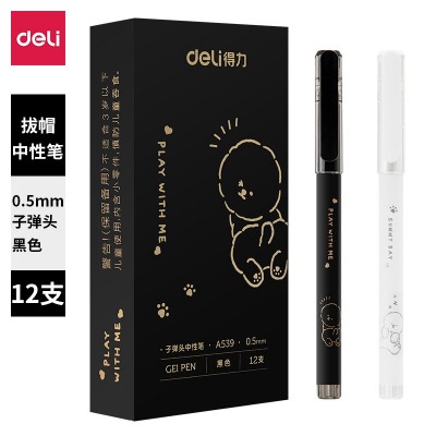 得力A539学生中性笔0.5mm子弹头(黑)(支)