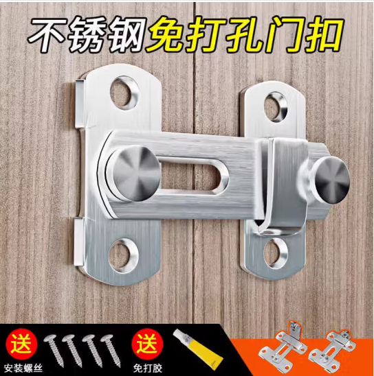 杜奥DOU-PMDK03D 不锈钢插销门扣免打孔门栓搭扣推拉门简易锁扣 平面大号(zhyghf_23094666)SKU:yzwhyp901591