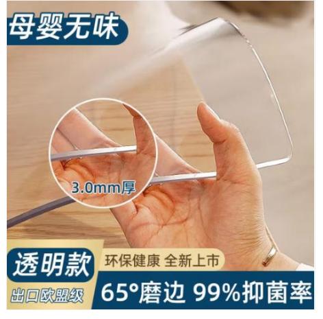 首页 > 装具 > 台布(桌布) > 桌面垫透明桌垫茶几桌布防水防油免洗防烫pvc餐桌垫软玻璃抗菌级 食品级透明足厚3.0mm 70*150cm (zhyghf_202410539)SKU:yzwhyp901710