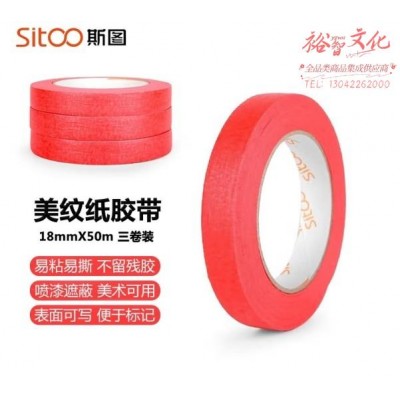 首页 > 建筑建材 > 装饰材料 > 斯图(sitoo)彩色美纹纸胶带 装修遮蔽带无痕纸 喷漆刷漆保护膜分色美文纸美工 红色18mmX50m 三卷装 (zhyghf_40011976)SKU:yzwhyp901765