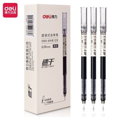 得力(deli)S865 无印风直液笔走珠签字笔 0.38mm全针管12支/盒 黑色