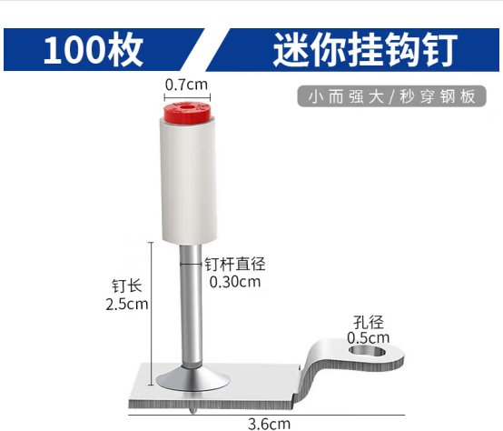 惠利得迷你吊顶神器射钉枪炮钉枪钢钉安装水电工装修吊卡木工打钉紧固器(迷你挂钩钉100枚) (zhyghf_23098347)SKU:yzwhyp902167